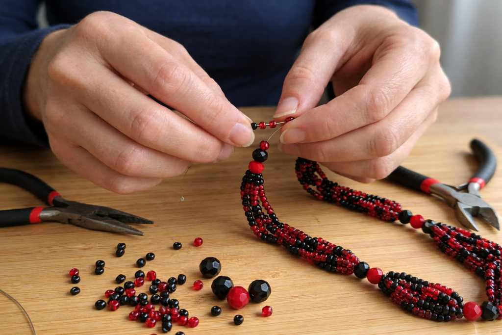 “A confecção de uma guia ou brajá exige mais do que técnica; exige conhecimento e respeito aos fundamentos. Utilizamos materiais selecionados — de cristais a miçangas de alta qualidade — garantindo que cada fio respeite as tradições e a energia de quem o irá usar. Aqui, a sua proteção é feita com consciência.”